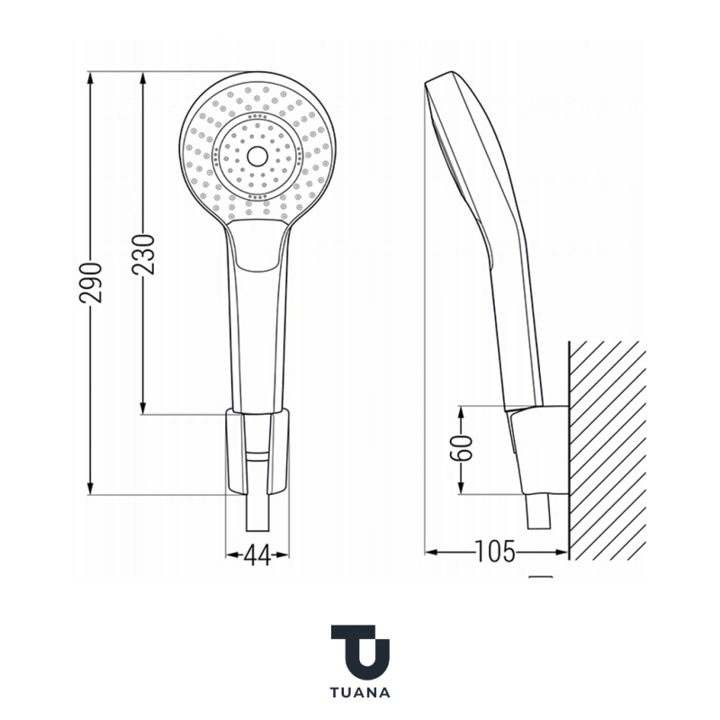 TUANA - Ruční sprcha- 3 funkce - kulatá - chrom