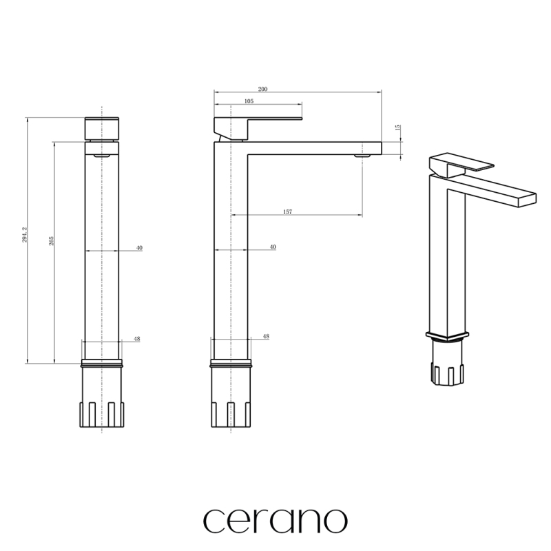 Baterie značky CERANO PROJECT jsou vyrobeny z kvalitní mosazi, která se vyznačuje vysoce korozivzdornými vlastnostmi. Ty jsou u vodovodních baterií zcela zásadní. Jejich životnost a funkčnost je tak maximální a dlouhodobá. Jsou estetické, elegantní a podporují vzhled každé moderní koupelny.