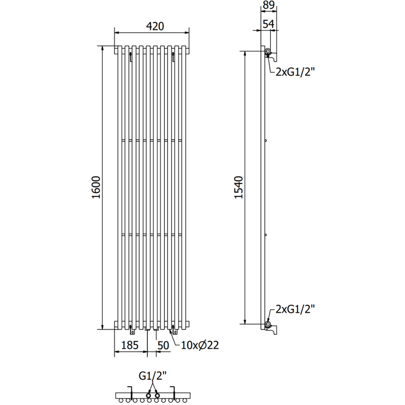 TULSA otopné těleso 1600x420, 613 W, černá W219-1600-420-00-70