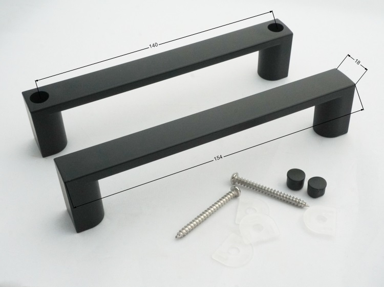 Kwadratowy uchwyt do drzwi prysznicowych o rozstawie otworów montażowych równym 140mm.