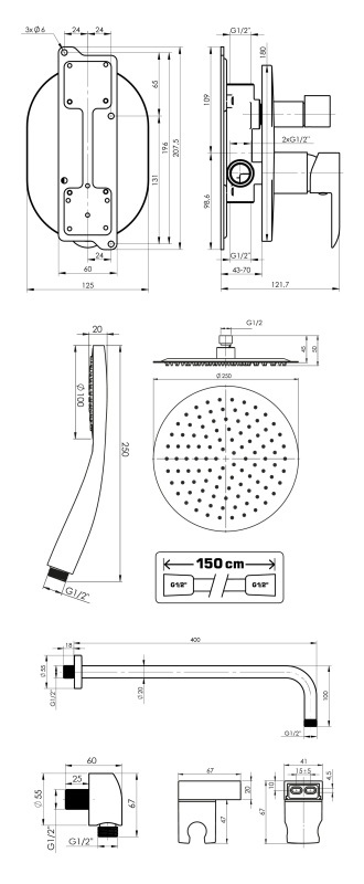 ULTRA-2F GRAFIT, podomítkový sprchový set včetně příslušenství
