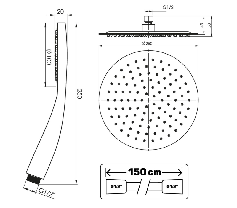 - Ruční sprchová růžice Solo, 1-polohová