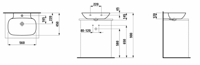 Umyvadlo Laufen Ino 56x45 cm otvor pro baterii, bez přepadu H8163020001111