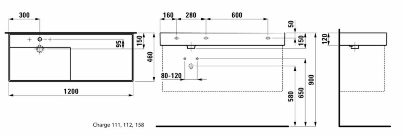 Umyvadlo s otvorem pro baterii, bez přepadu o šířce 120 cm, hloubce 46 cm a výšce 15 cm. Antibakteriální povrch se snadnou údržbou. Balení s vtokem, bez baterie, bez sifonu. Montážní sadu je nutné dokoupit.