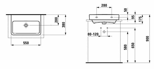 Umyvadlo bez otvoru pro baterii o šířce 55 cm, hloubce 38 cm a výšce 17,5 cm. Balení bez sifonu a baterie. Montážní sadu je nutné dokoupit.