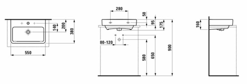 Umyvadlo Laufen Pro 55x38 cm otvor pro baterii, bez přepadu H8179580001561