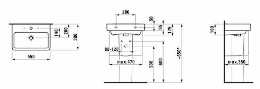 Umyvadlo Laufen Pro 55x38 cm otvor pro baterii, bez přepadu H8189580001561