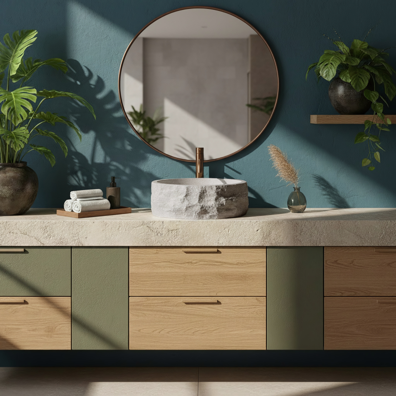 Zvol umyvadlo na desku Rea Alice, pokud hledáš výrazný, přírodní akcent do své koupelny. Tento kulatý model skvěle kombinuje surový vzhled kamene s moderní funkčností a komfortem při používání.Materiál Artificial Stone – umyvadlo je vyrobeno z pevného kompozitního umělého kamene. Tento materiál je velmi odolný vůči poškození a odštípnutí a zároveň je teplejší a příjemnější na dotek než běžná keramika.Textura štípaného kamene – vnější povrch mísy připomíná surovou, neopracovanou skálu. Světlý povrch s jemným tečkováním a nepravidelná, drsná struktura dodávají tvaru výrazný, řemeslný charakter.Hladký vnitřek – v silném kontrastu k strukturovanému plášti je vnitřek umyvadla dokonale hladký. Díky tomu voda volně odtéká do odpadu a každodenní údržba je rychlá a bezproblémová.Kulatý tvar a montáž na desku – klasický kulatý tvar je velmi praktický pro každodenní použití. Instalace přímo na desku nebo skříňku umožňuje plně vyniknout dekorativní „kamenné“ textuře ze všech stran.Umyvadlo Rea Alice je ideální volbou pro milovníky designu inspirovaného přírodou. Jeho surový vzhled se skvěle hodí do moderních, minimalistických i wabi-sabi interiérů a vnese do koupelny výrazný organický akcent.