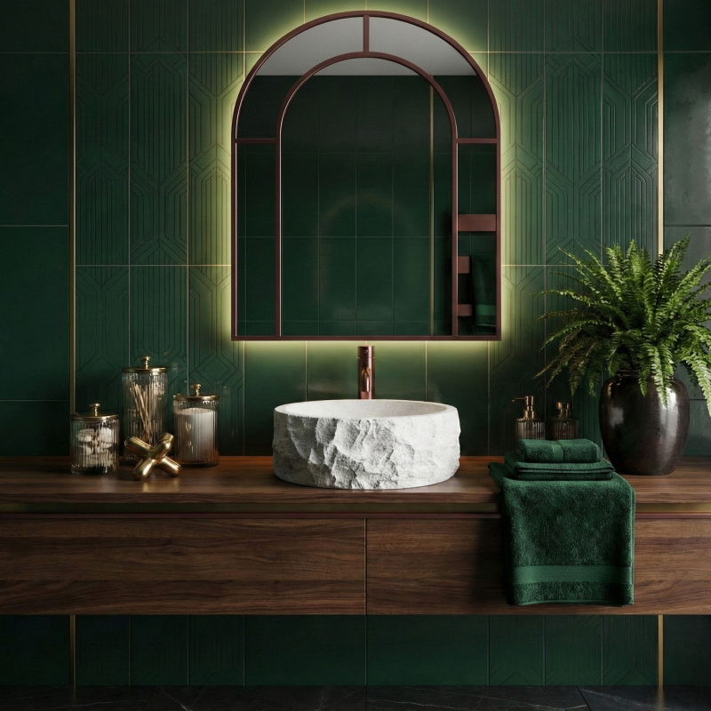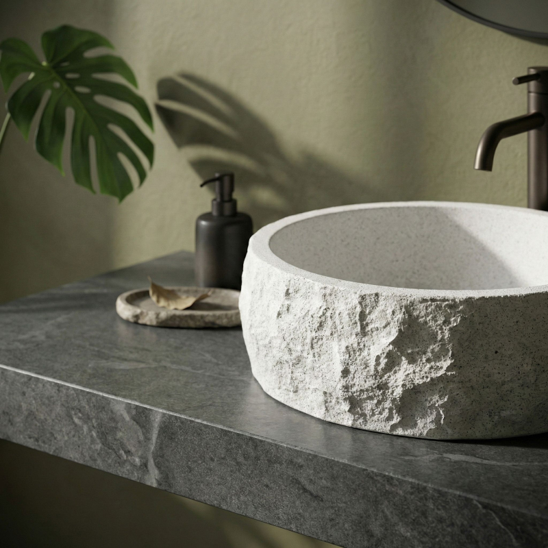 Zvol umyvadlo na desku Rea Alice, pokud hledáš výrazný, přírodní akcent do své koupelny. Tento kulatý model skvěle kombinuje surový vzhled kamene s moderní funkčností a komfortem při používání.Materiál Artificial Stone – umyvadlo je vyrobeno z pevného kompozitního umělého kamene. Tento materiál je velmi odolný vůči poškození a odštípnutí a zároveň je teplejší a příjemnější na dotek než běžná keramika.Textura štípaného kamene – vnější povrch mísy připomíná surovou, neopracovanou skálu. Světlý povrch s jemným tečkováním a nepravidelná, drsná struktura dodávají tvaru výrazný, řemeslný charakter.Hladký vnitřek – v silném kontrastu k strukturovanému plášti je vnitřek umyvadla dokonale hladký. Díky tomu voda volně odtéká do odpadu a každodenní údržba je rychlá a bezproblémová.Kulatý tvar a montáž na desku – klasický kulatý tvar je velmi praktický pro každodenní použití. Instalace přímo na desku nebo skříňku umožňuje plně vyniknout dekorativní „kamenné“ textuře ze všech stran.Umyvadlo Rea Alice je ideální volbou pro milovníky designu inspirovaného přírodou. Jeho surový vzhled se skvěle hodí do moderních, minimalistických i wabi-sabi interiérů a vnese do koupelny výrazný organický akcent.