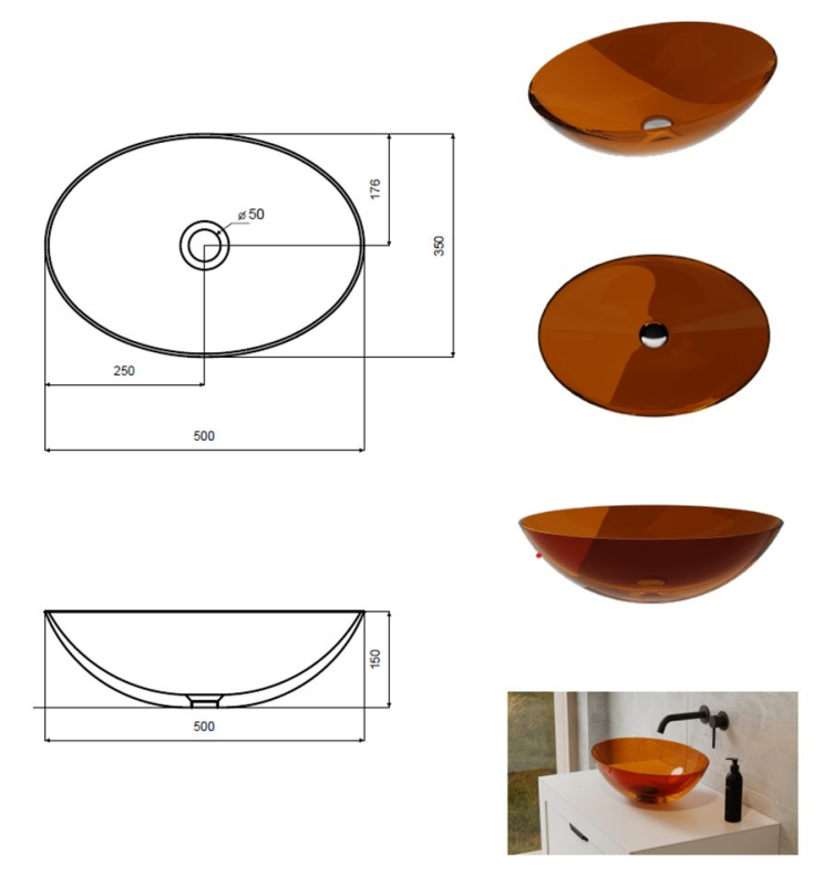 - 50 × 35 x 15 cm, hmotnost umyvadla 3,5 kg
