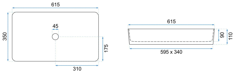 Rea Denis umyvadlo na desku, černý matný kámen REA-U6510