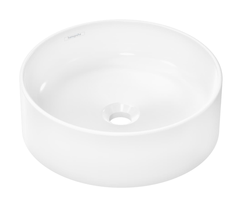 Umyvadlo na desku v bílé barvě bez otvoru pro baterii, bez přepadu od výrobce Hansgrohe ze série Xuniva S. Rozměry produktu jsou 40x40x13 cm. Montážní sada je součástí balení.