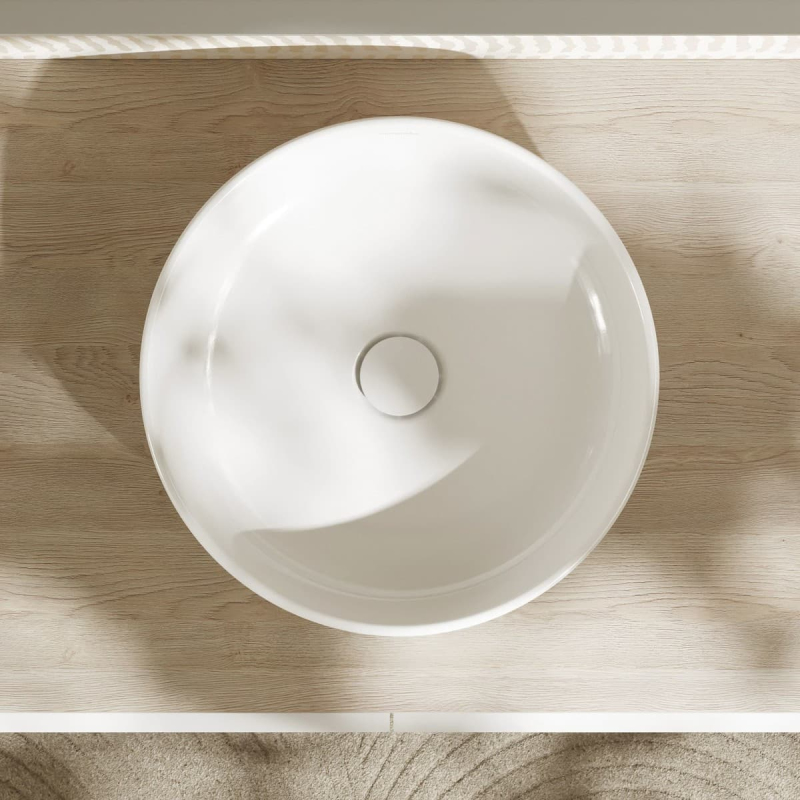 Umyvadlo na desku v bílé barvě bez otvoru pro baterii, bez přepadu od výrobce Hansgrohe ze série Xuniva S. Rozměry produktu jsou 40x40x13 cm.