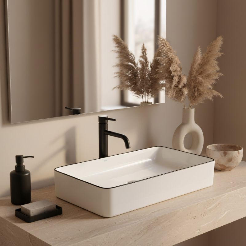 Představujeme Vám nové moderní umyvadlo na desku série Rea Denis. Umyvadlo obdélníkového tvaru je vyrobeno z materiálů nejvyšší kvality a jeho vlastnosti splní veškeré vaše požadavky. Tento model ocení především zákazník, hledající nejen funkční, ale také estetické řešení. Umyvadlo je určeno k montáži na desku, ale je možné ho kombinovat i se skřínkou. Umyvadlo v bílém lesklém provedení s černým stylovým okrajem se navíc díky speciální fázi výroby snadno čistí a je velice odolné.