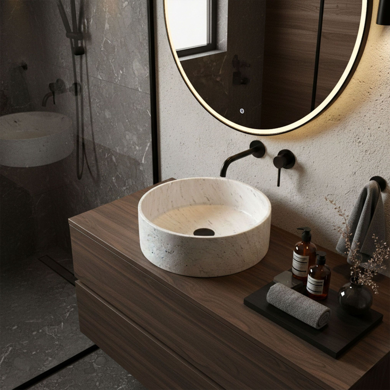 Objevte harmonii plynoucí z přírody a přeneste ji do svého interiéru díky umyvadlu Rea Destiny ve výjimečné povrchové úpravě imitující kámen. Jeho kulatý tvar a jednoduchá, surová forma odkazují na organické struktury a vytvářejí v koupelně atmosféru klidu a luxusního odpočinku. Zpracování z vysoce kvalitního kompozitu zajišťuje, že umyvadlo nejen zaujme estetikou, ale je také mimořádně odolné pro každodenní používání.Povrchová úprava ve stylu kamene – vnější povrch se strukturou přírodní skály dodává interiéru jedinečný, moderní charakterHladký vnitřek mísy – matný a na dotek příjemný vnitřní povrch usnadňuje každodenní údržbu čistoty a hygienyOdolný kompozitní materiál Artificial Stone – zajišťuje výjimečnou odolnost vůči mechanickému poškození i změnám barvy a garantuje bezchybný vzhled po dlouhá létaKonstrukce na desku bez otvoru pro baterii – dává plnou volnost při volbě podomítkové baterie nebo vysoké baterie na desku a podtrhuje minimalistický stylBez přepadového otvoru – jednolitá, hladká forma umyvadla působí mimořádně elegantně a moderně Umyvadlo na desku Rea Destiny je ideální volbou pro milovníky designu inspirovaného přírodou, který spojuje syrovost kamene s jemností oblejších linií. Díky využití moderních výrobních technologií se produkt značky REA vyznačuje nejvyšší kvalitou a pečlivostí v každém detailu zpracování. Volbou tohoto modelu získáte jistotu, že vaše umyvadlová zóna se stane centrálním, mimořádně efektním prvkem každé koupelnové aranže.