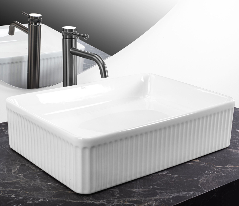 Představujeme Vám nové moderní umyvadlo na desku série Rea Cleo. Umyvadlo obdélníkového tvaru je vyrobeno z materiálů nejvyšší kvality a jeho vlastnosti splní veškeré vaše požadavky. Tento model ocení především zákazník, hledající nejen funkční, ale také estetické řešení. Umyvadlo je určeno k montáži na desku, ale je možné ho kombinovat i se skřínkou. Umyvadlo v bílém lesklém provedení se vznešeným zlatým okrajem se navíc díky speciální fázi výroby snadno čistí a je velice odolné.