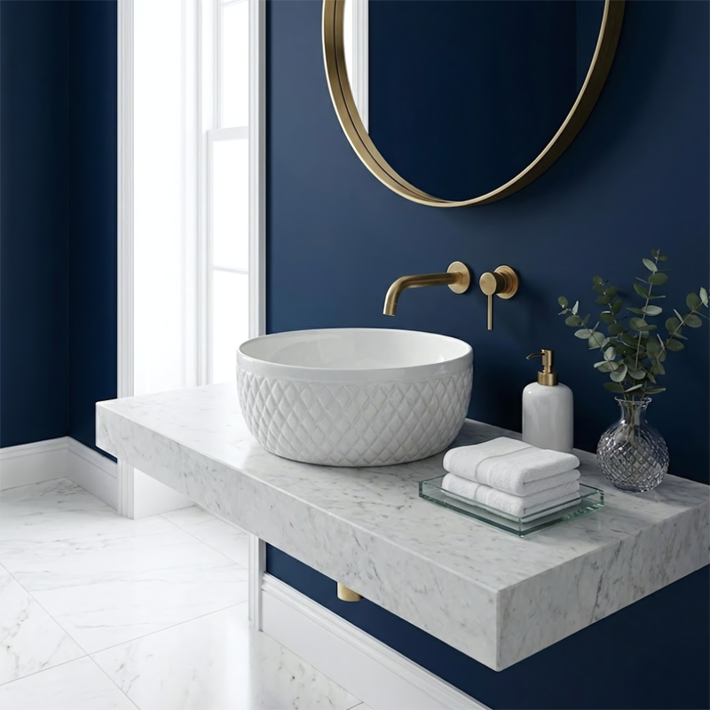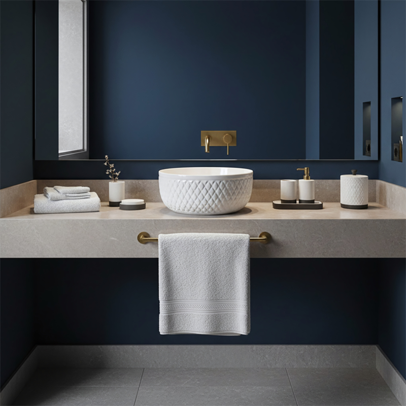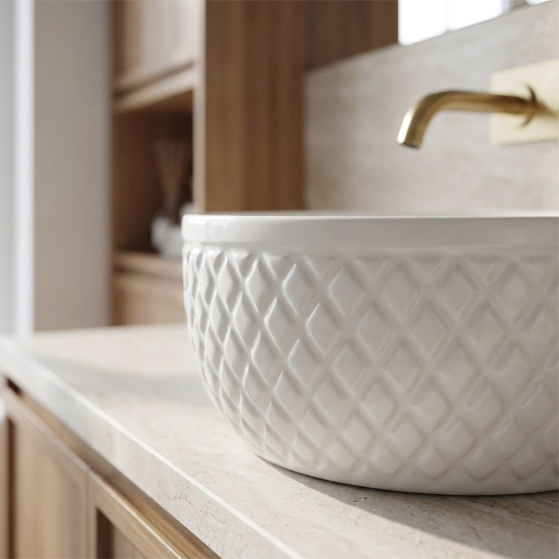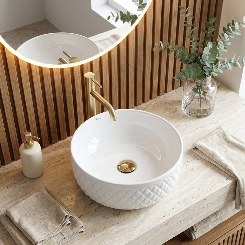 Podtrhněte elegantní charakter své koupelny s umyvadlem na desku Rea Galaxy. Tento model spojuje klasickou bílou s dekorativní formou, která upoutá pozornost. Vnější stěny mísy zdobí rýhovaná struktura v kosočtvercích, díky níž keramika působí jako luxusní doplněk v glamour stylu.Dekorativní textura – vnější povrch umyvadla má výrazné geometrické reliéfy připomínající prošívání, které vytvářejí efektní hru světla a stínu a oživují interiér.Optimální výška – mísa je hlubší než standardní modely. Tento rozměr omezuje rozstřikování vody a je ideální pro kombinaci s vysokými stojánkovými nebo podomítkovými bateriemi.Bílá keramika – provedení z vysoce kvalitní glazované sanitární keramiky zajišťuje dlouhou životnost, bezchybný lesk a odolnost proti poškrábání.Hladké vnitřní provedení – na rozdíl od dekorativního pláště je vnitřek mísy dokonale hladký, což usnadňuje každodenní čištění a zajišťuje hygienu.Montáž na desku – umyvadlo je určeno k postavení na desku nebo skříňku a stává se výrazným centrálním prvkem mycí zóny.Umyvadlo Rea Galaxy je volbou pro ty, kteří chtějí v koupelně prolomit minimalismus. Jeho šperkařský design se skvěle kombinuje s elegantními doplňky a spojuje praktické přednosti hluboké mísy s jedinečným stylem.