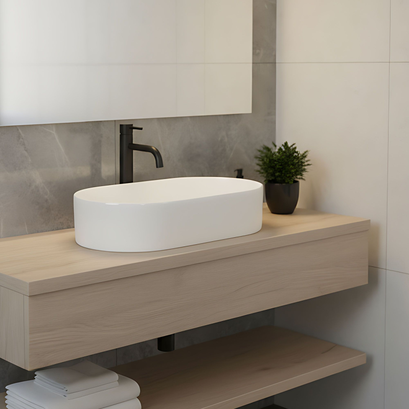 Prezentujemy Państwu piękną i niezwykle funkcjonalną i nowoczesną umywalkę. Jest to produkt, który w doskonały sposób wypełni Państwa przestrzeń łazienkową zachowując nienaganny wygląd i estetykę wnętrza. Umywalka jest przystosowana do montażu na blacie bądź szafce. Została wykonana z wysokogatunkowej ceramiki sanitarnej. Dzięki specjalnej fazie produkcji jest trwała i łatwa w utrzymaniu czystości. Odpowiednie baterie i syfony do umywalki znajdą Państwo w ofercie naszego sklepu