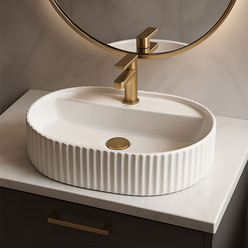 Představujeme Vám nové moderní umyvadlo na desku série Rea Cleo. Umyvadlo obdélníkového tvaru je vyrobeno z materiálů nejvyšší kvality a jeho vlastnosti splní veškeré vaše požadavky. Tento model ocení především zákazník, hledající nejen funkční, ale také estetické řešení. Umyvadlo je určeno k montáži na desku, ale je možné ho kombinovat i se skřínkou. Umyvadlo v bílém lesklém provedení se vznešeným zlatým okrajem se navíc díky speciální fázi výroby snadno čistí a je velice odolné.
