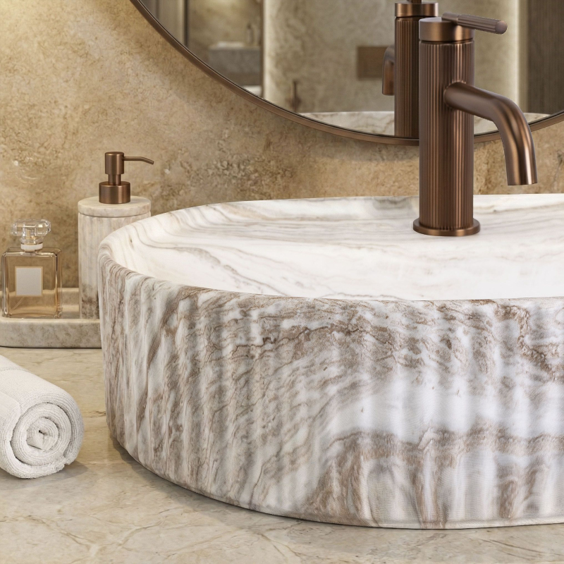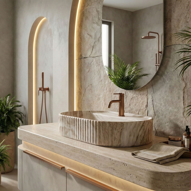 Hledáte stylové umyvadlo, které se stane centrálním bodem vaší mycí zóny? Objevte výjimečné umyvadlo na desku Rea Marcela 60 v matném provedení s jedinečným vzorem imitujícím přírodní kámen. Spojení moderní formy a syrové elegance dodá každé koupelně jedinečný charakter a luxusní vzhled.Rýhovaný povrch – dodává trojrozměrnost a moderní šmrnc, přitahuje pozornost a podtrhuje jedinečný design interiéruVzor imitující kámen – vnáší do koupelny přirozený klid a eleganci a zároveň zachovává všechny výhody snadno udržovatelné keramikyŠířka 60 cm – zajišťuje optimální prostor a komfort při každodenní hygieně a omezuje rozstřikování vody na deskuVysoce kvalitní sanitární keramika – zaručuje výjimečnou odolnost, odolnost proti poškrábání a neměnnou estetiku po mnoho let používáníTovární otvor pro baterii – umožňuje přímou montáž armatury, šetří místo na desce a usnadňuje instalaciMatné provedení – je velmi praktické, protože maskuje drobné usazeniny a mapy, a zachovává bezchybný vzhled déle Umyvadlo na desku Rea Marcela 60 je skvělou volbou pro ty, kteří oceňují funkčnost spojenou s odvážným designem. Díky pevné konstrukci ze sanitární keramiky a důrazu na každý detail zajišťuje tento produkt nejvyšší standard hygieny a pohodlí. Volbou tohoto modelu získáte jistotu spolehlivosti a elegance, která obstojí ve zkoušce času.