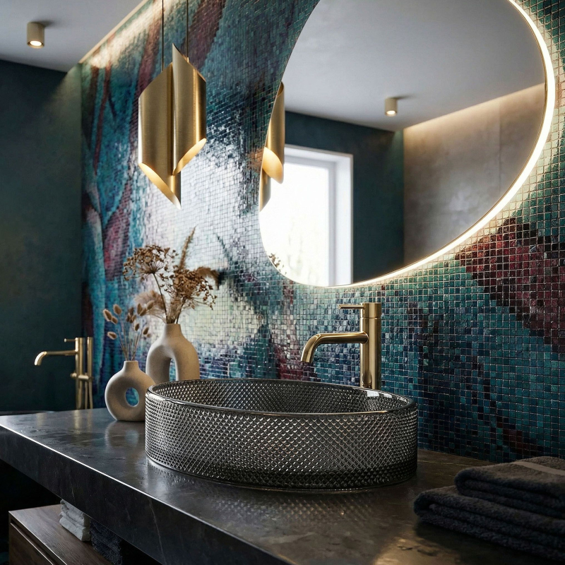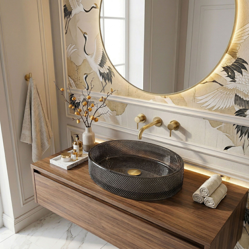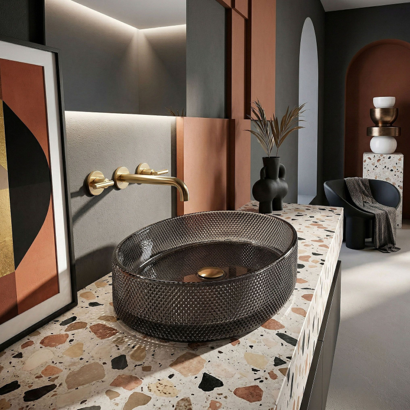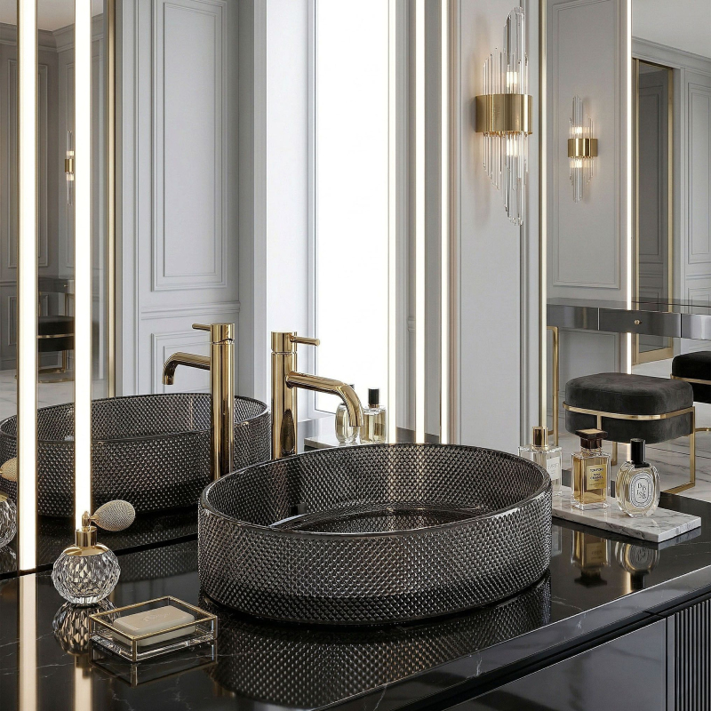 Hledáte prvek, který dodá vaší koupelně skutečně královský lesk? Umyvadlo na desku Mirella, vyrobené z tlustého dekorativního skla, je ideální volbou pro ty, kteří oceňují exkluzivitu a design inspirovaný šperkařstvím. Jeho jedinečná struktura z něj činí ústřední bod každé aranžace a okouzluje hrou světla i precizností zpracování, která promění každý interiér.Skleněný materiál – použití skla zaručuje nejen úžasný vizuální efekt, ale také vysokou odolnost proti poškrábání a každodennímu používání.Šperkařská textura povrchu – dekorativní reliéf na vnější straně umyvadla připomíná broušené drahokamy a dodává celku luxusní a vytříbený charakter.Úchvatné světelné odlesky – speciální struktura materiálu způsobuje, že se umyvadlo pod světlem nádherně třpytí a vnese do koupelny dynamiku i eleganci.Ideální pro různé styly – oválná forma a bohaté zdobení činí tento model perfektním pro glamour interiéry, klasické art deco i moderní luxury prostory.Hygienická hladkost – hladké provedení vnitřku mísy zabraňuje usazování nečistot, což umožňuje zachovat bezchybnou čistotu s minimální námahou. Volbou umyvadla na desku Mirella značky REA získáváte záruku produktu, který spojuje užitné vlastnosti s uměleckým řemeslem. Pevná konstrukce a důraz na každý detail zajišťují, že tato skleněná mísa je nejen odolná, ale především každý den zaujme svým vzhledem. Je to ideální způsob, jak vnést do umyvadlové zóny dotek luxusu a výjimečné estetiky.
