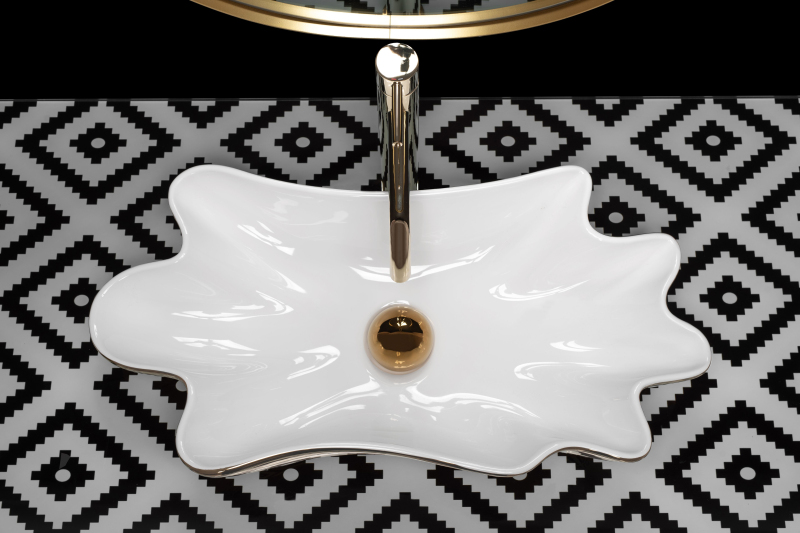 Představujeme Vám nové moderní umyvadlo na desku série Rea Infinity. Umyvadlo netradičního asymetrického tvaru je vyrobeno z materiálů nejvyšší kvality a jeho vlastnosti splní veškeré vaše požadavky. Tento model ocení především zákazník, hledající nejen funkční, ale také estetické řešení. Umyvadlo je určeno k montáži na desku, ale je možné ho kombinovat i se skřínkou. Umyvadlo v bílém lesklém provedení na vnitřní straně a zlatém lesklém provedení na vnější straně se navíc díky speciální fázi výroby snadno čistí a je velice odolné. Součástí sady je výpusť typu Click-Clack, vyrobená z těch nejkvalitnějších materiálů.