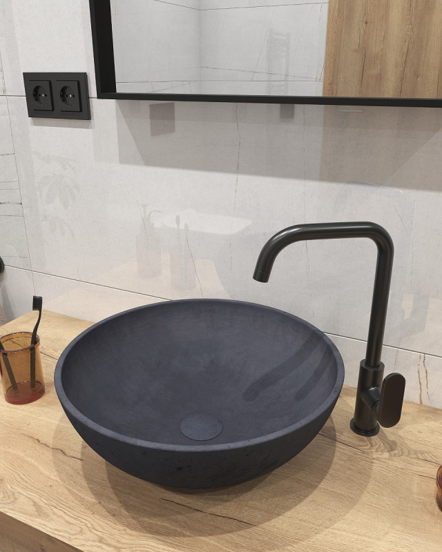 Správné umyvadlo vdechne život vaší koupelně a podtrhne její styl, jako umyvadlo ze série CEMENTO na desku bez přepadu. Umyvadlo disponuje šířkou 42 cm, hloubkou 42 cm a výškou 15 cm. Antracitové barevné provedení a kulatý tvar. Materiál je pravý beton. Vtok není součástí dodání.