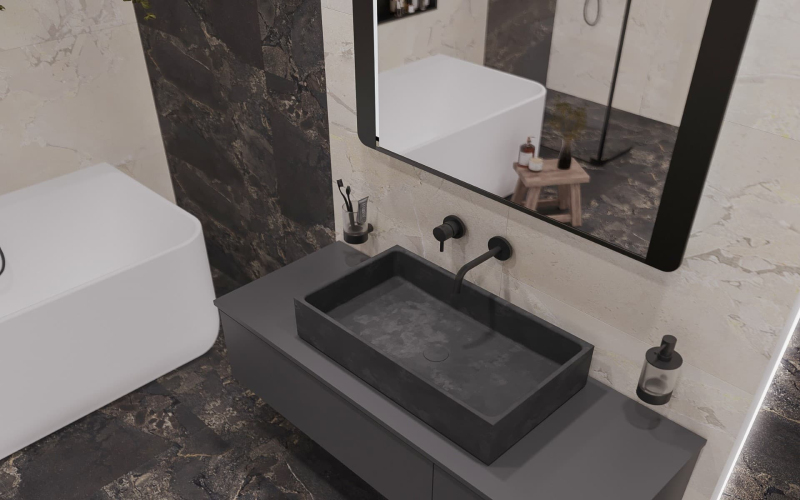 Správné umyvadlo vdechne život vaší koupelně a podtrhne její styl, jako umyvadlo ze série CEMENTO na desku bez přepadu. Umyvadlo disponuje šířkou 64 cm, hloubkou 36,5 cm a výškou 14 cm. Antracitové barevné provedení a hranatý tvar. Materiál je pravý beton. Vtok není součástí dodání.