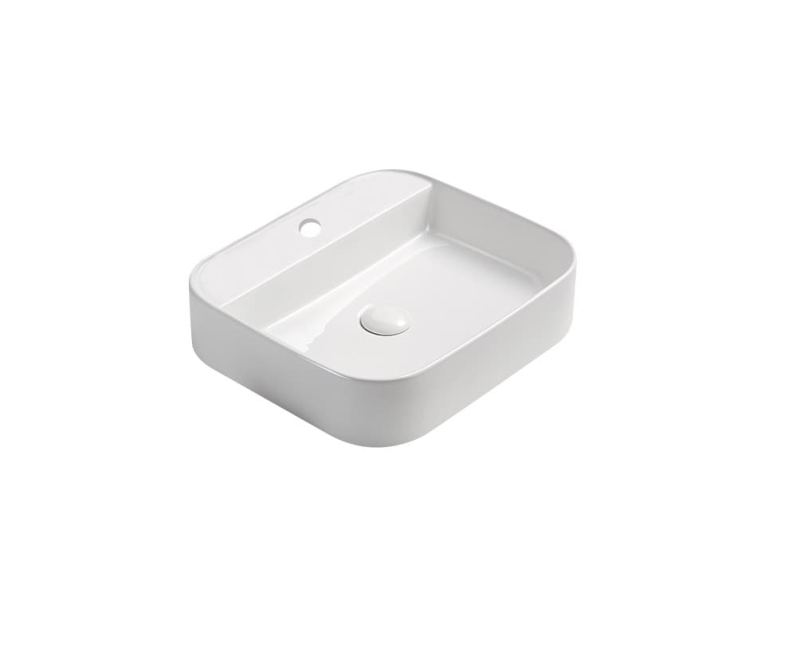 Umyvadlo na desku v bílém provedení s jedním otvorem pro baterii. Vtok není součástí balení.
