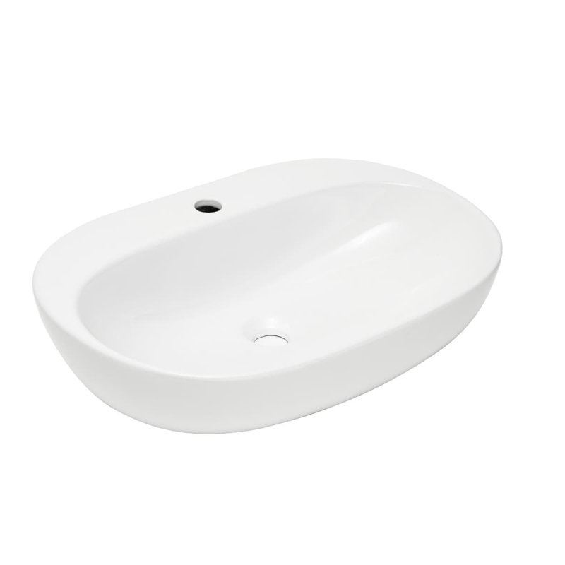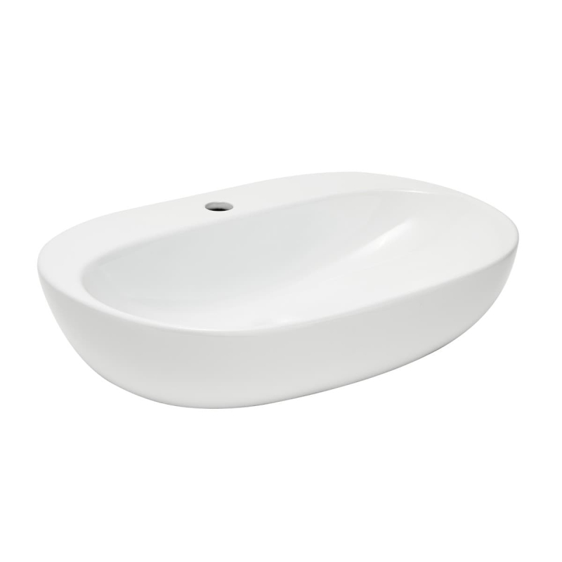 Umyvadlo na desku v bílé barvě s otvorem pro baterii uprostřed od výrobce SAT ze série Infinitio. Rozměry produktu jsou 60x40,5x15 cm.