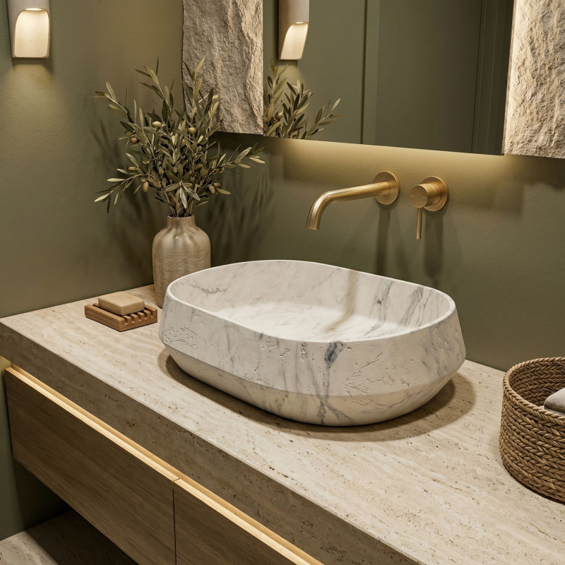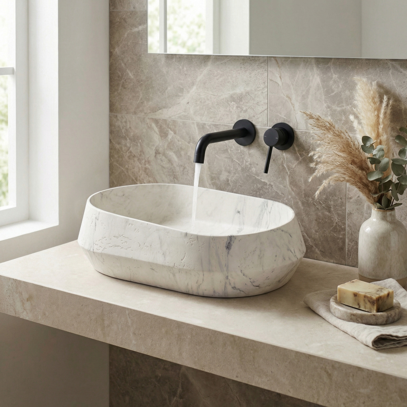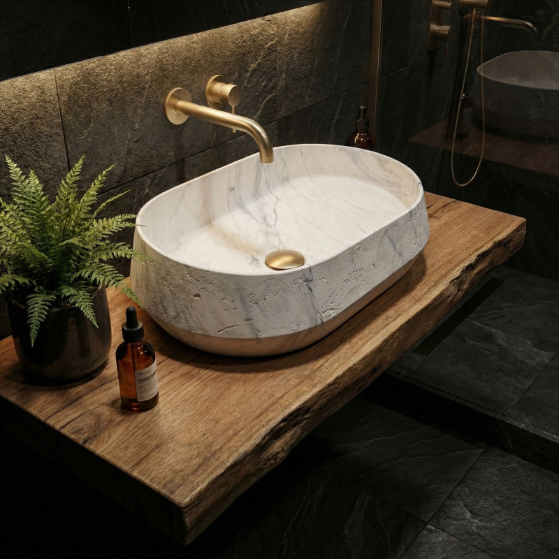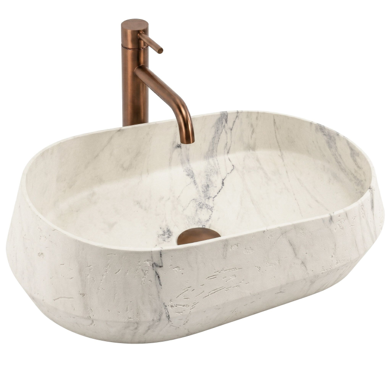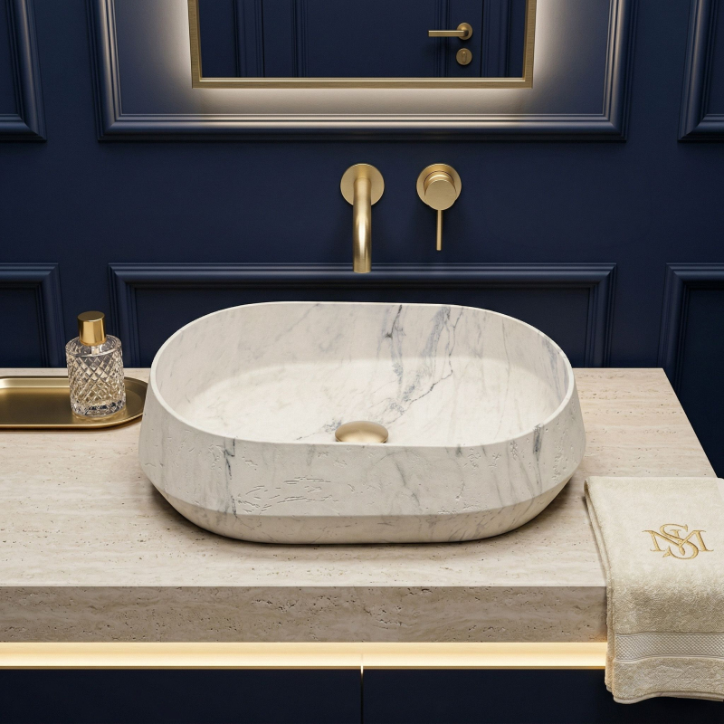 Vneste do své koupelny moderní design s umyvadlem na desku Zoe Marlo. Tento model vyniká unikátní asymetrickou formou a elegantní povrchovou úpravou inspirovanou přírodním mramorem. Vyrobeno z inovativního kompozitu Artificial Stone, představuje ideální spojení vysoké estetiky a každodenní odolnosti.Asymetrická forma – netradiční tvar dodává tělesu dynamiku a tvoří výrazný sochařský akcent v prostoru koupelny.Materiál Artificial Stone – nejkvalitnější umělý kompozitní kámen zaručuje výjimečnou odolnost proti poškrábání, změnám barvy a mechanickému poškození, což zajišťuje spolehlivost po celá léta.Teplý mramorový vzor (Marlo) – světlý povrch s jemným teplým nádechem je protnut výrazným ocelově modrým žilkováním. Tato barevnost věrně odráží ušlechtilou krásu kamene a vnáší do interiéru neobyčejně útulný a zároveň luxusní charakter.Matná povrchová úprava – elegantní matná struktura umyvadla vypadá krásně a zdůrazňuje vzor kamene.Montáž na desku – umyvadlo je ideálně přizpůsobeno pro instalaci na desku nebo skříňku, což umožňuje plně vystavit jeho originální tvar a designové kouzlo.Výběrem umyvadla Zoe Marlo se rozhodujete pro produkt, který boří schémata a kombinuje odvážnou asymetrii s nadčasovou elegancí. Je to vynikající volba pro ty, kteří hledají neotřelá a stylová řešení pro svou koupelnu.