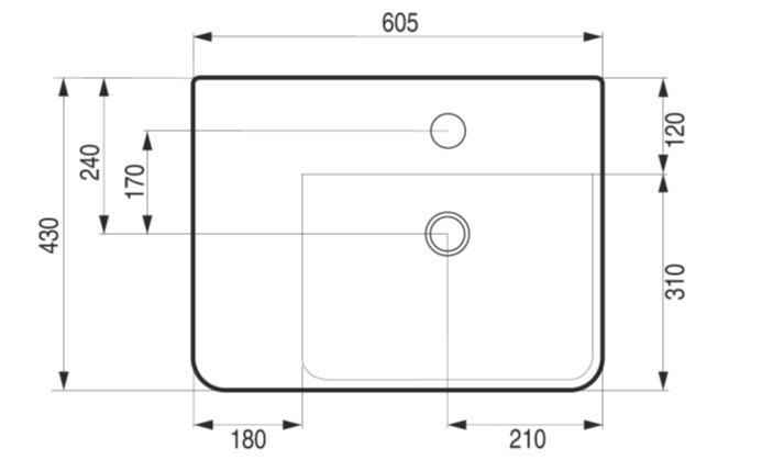 Umyvadlo nástěnné i na desku 60,5×43×12,5 cm II. JAKOST
