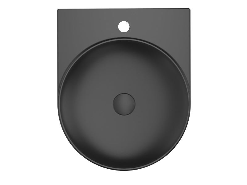 Tenkostěnné keramické umyvadlo Yard k instalaci na konzoli Yard nebo na konstrukci CS Yard, bez přepadu. V černém matném provedení. S otvorem pro stojánkovou baterii.