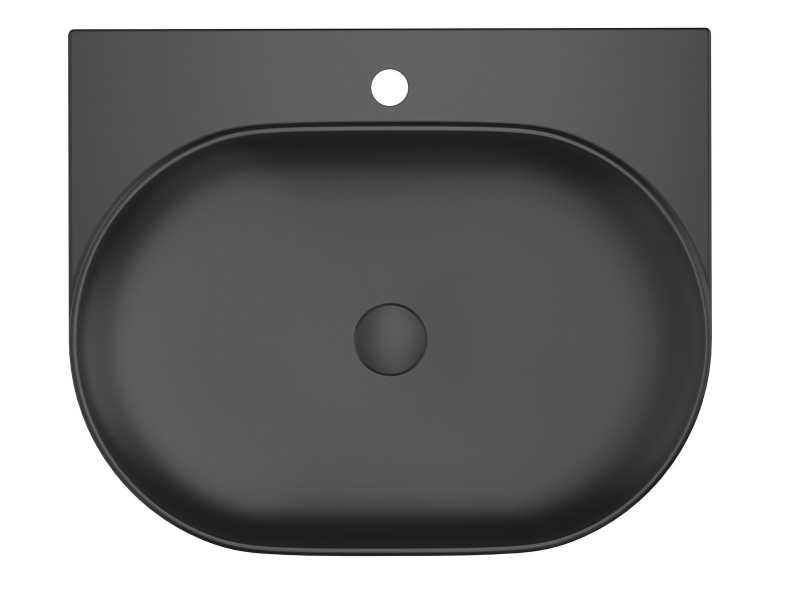 Tenkostěnné keramické umyvadlo Yard k instalaci na konzoli Yard nebo na konstrukci CS Yard, bez přepadu. V černém matném provedení. S otvorem pro stojánkovou baterii.