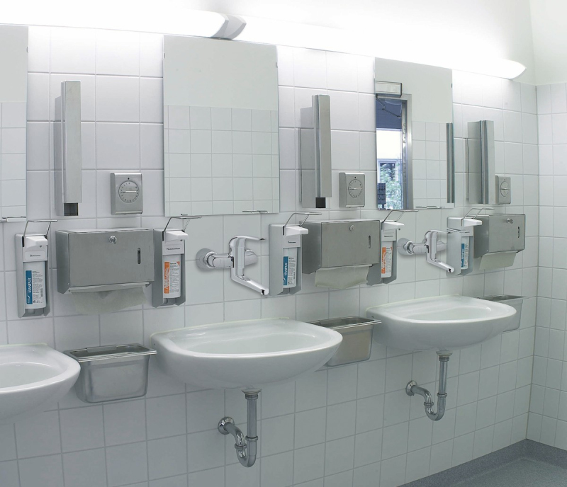 Páková nástěnná umyvadlová baterie v chromovém provedení.