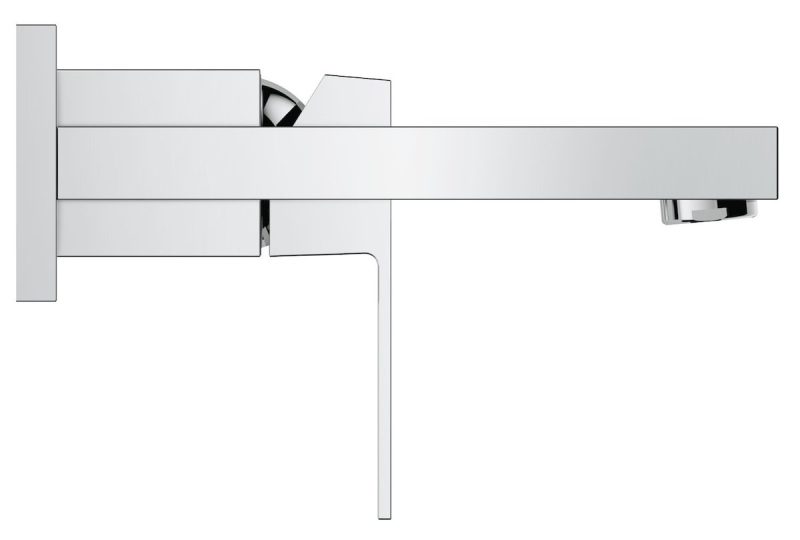 Páková podomítková umyvadlová baterie bez podomítkového tělesa. V hranatém designu. V chromovém provedení.