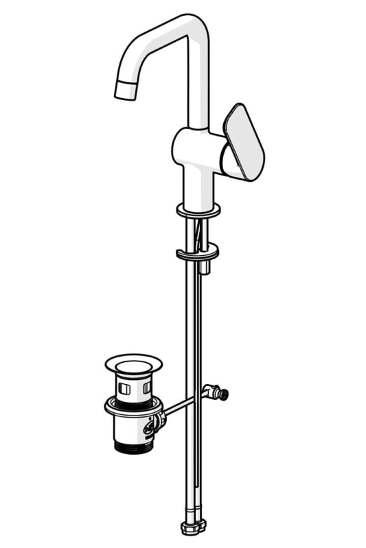 Páková stojánková umyvadlová baterie s výpustí v chromovém provedení. Průtok baterie je 4,8 litrů/minutu. Výška baterie je 25,2 cm. Ramínko je ve výšce 18,5 cm. S lesklým povrchem