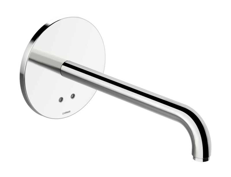 Senzorová nástěnná umyvadlová baterie bez podomítkového tělesa. V chromovém provedení. Průtok baterie je 4,8 litrů/minutu.