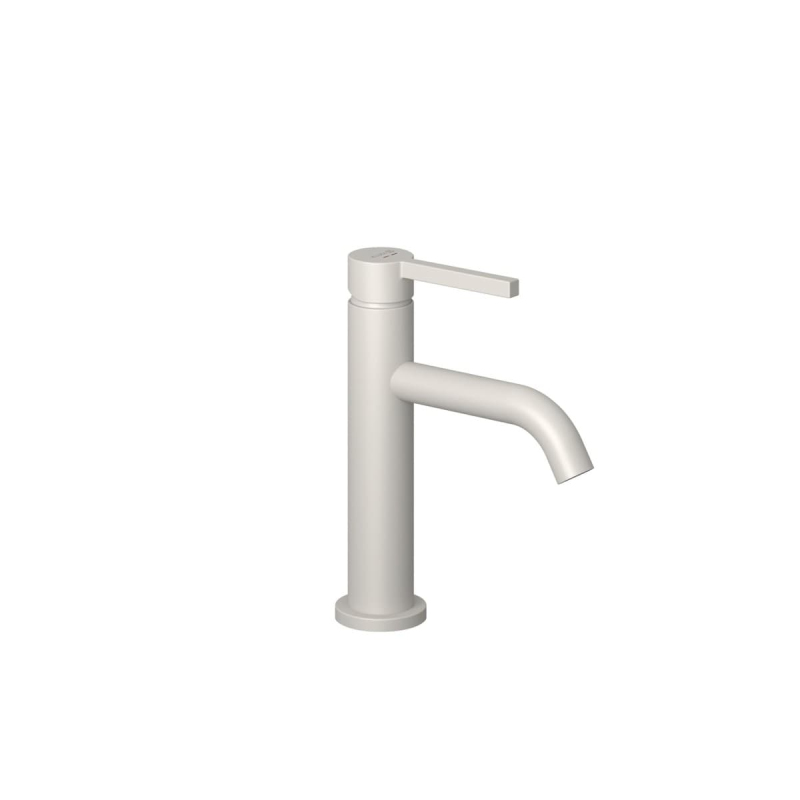 Páková stojánková umyvadlová baterie s clic-clacem v barevném provedení matná světle šedá. Průtok je 4,5 litrů/minutu. Výška baterie je 19,5 cm. Ramínko je ve výšce 10 cm. S matným povrchem.