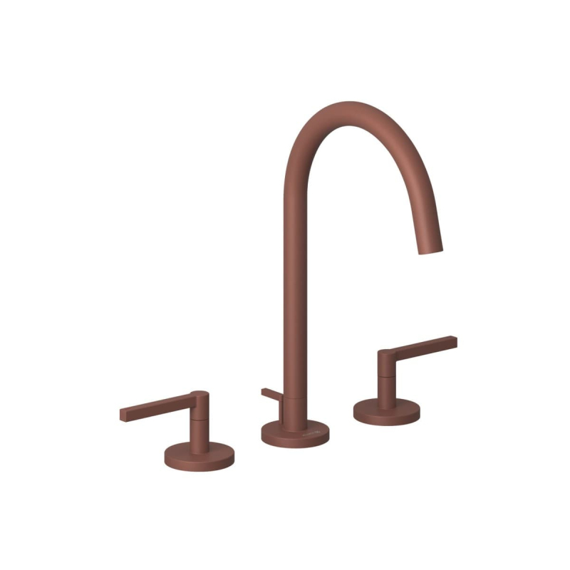 Kohoutková stojánková umyvadlová baterie s výpustí v barevném provedení matná cihlová. Průtok je 5,6 litrů/minutu. Výška baterie je 29 cm. Ramínko je ve výšce 18,5 cm. S matným povrchem.