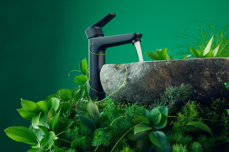 Páková stojánková umyvadlová baterie bez výpusti. V černé barvě. S matným povrchem.