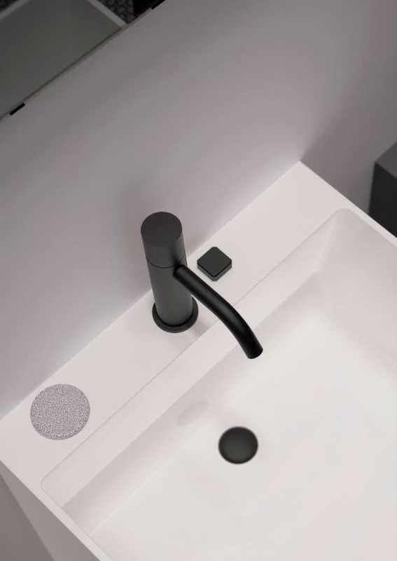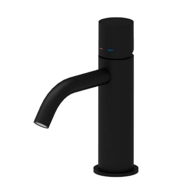 Stojánková umyvadlová baterie bez výpusti v černé barvě. Průtok baterie je 8,9 litrů/minutu. Výška baterie je 17,6 cm. Ramínko je ve výšce 7,9 cm. S matným povrchem.