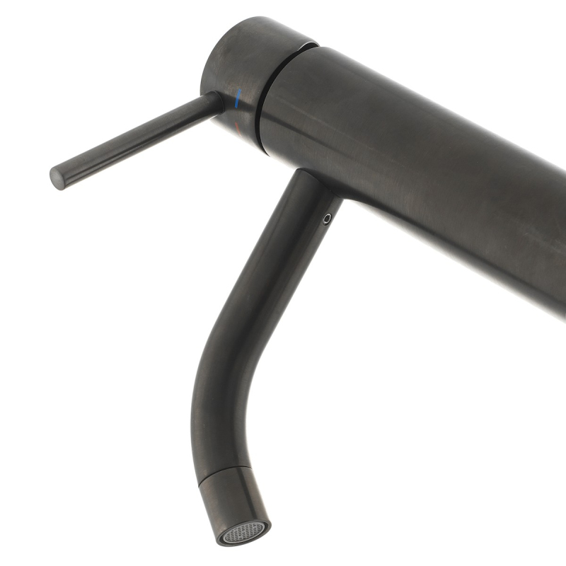 Páková stojánková umyvadlová baterie bez výpusti. V barevním provedení kartáčovaný černý nikl. Průtok baterie je 8,9 litrů/minutu. Výška baterie je 16,2 cm. Ramínko je ve výšce 7,9 cm. S matným povrchem.