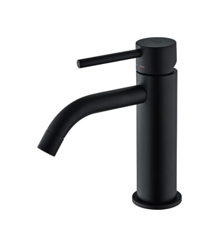 Páková stojánková umyvadlová baterie s výpustí v barevném provedení černý mat. Průtok baterie je 8,9 litrů/minutu. S matným povrchem.