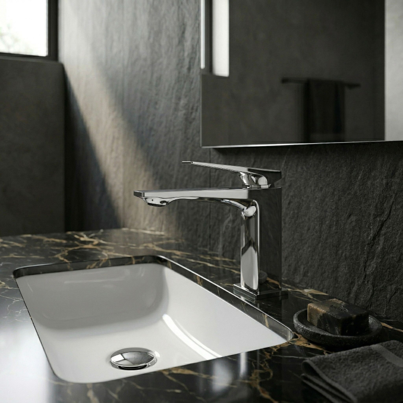 Umyvadlová baterie Prime v barvě chromu je moderní volbou pro ty, kteří oceňují čistou formu a univerzální eleganci v koupelně. Její nízké, geometrické tělo s výraznými liniemi zajišťuje, že se tato armatura skvěle hodí ke každé barevnosti keramiky a dodává mycí zóně moderní, architektonický výraz.Ergonomická nízká konstrukce – baterie byla navržena pro montáž na umyvadlo nebo na desku u zapuštěných modelů, čímž zajišťuje proporční vzhled a plný komfort každodenního používání.Klasické provedení Chrom (Electroplating) – stříbřitý, lesklý povrch nanášený pokročilou metodou galvanizace se vyznačuje vysokou odolností proti poškrábání, zrcadlovým leskem a mimořádnou snadností údržby.Masivní mosazné tělo – zhotovení z kvalitní mosazi zaručuje výjimečnou odolnost, stabilitu a plnou ochranu armatury proti korozi po dlouhá léta.Keramická kartuše – použití spolehlivého mechanismu umožňuje plynulou a přesnou regulaci síly proudu i teploty vody, což se promítá do vysoké bezporuchovosti.Moderní geometrický design – tvar založený na ostrých hranách a plochá páka dodávají baterii jemný designový charakter, ideální pro minimalistické a moderní koupelny. Volbou umyvadlové baterie Prime Chrom získáváte spojení osvědčené technologie a moderní estetiky. Jde o praktický a spolehlivý prvek vybavení, který díky lesklému povrchu dodá vaší koupelně svěží a elegantní vzhled.