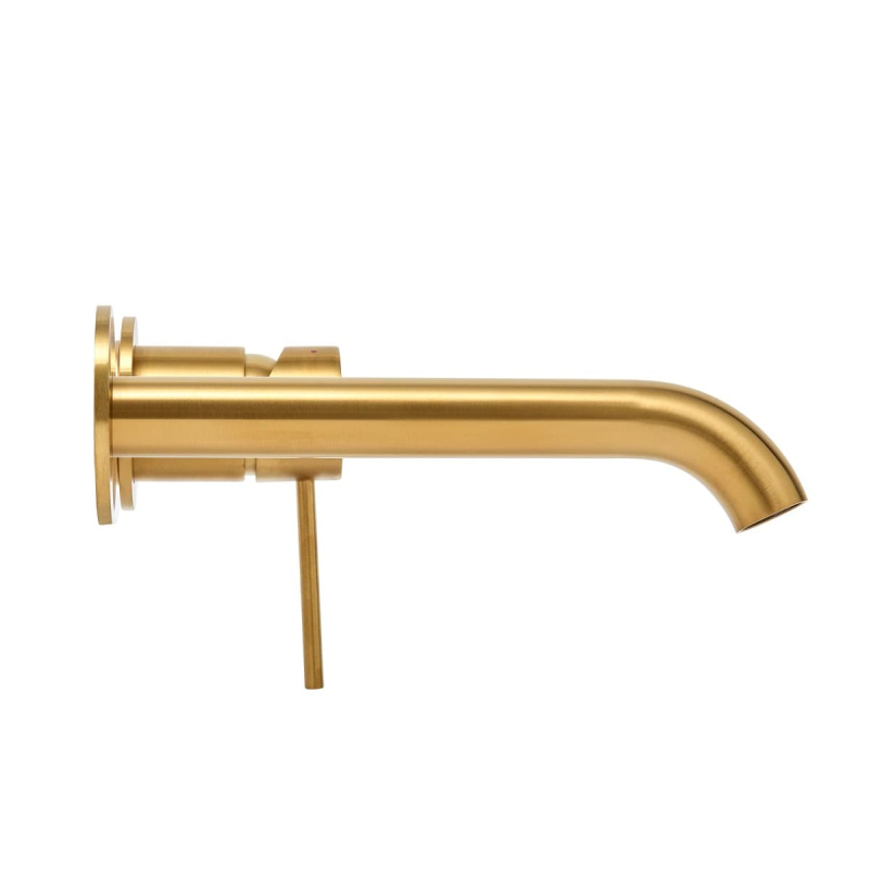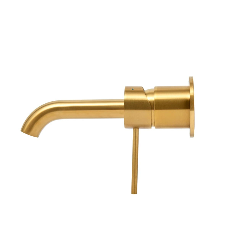 Páková podomítková umyvadlová baterie včetně podomítkového tělesa. V kulatém designu v barevném provedení broušená zlatá. S matným povrchem.