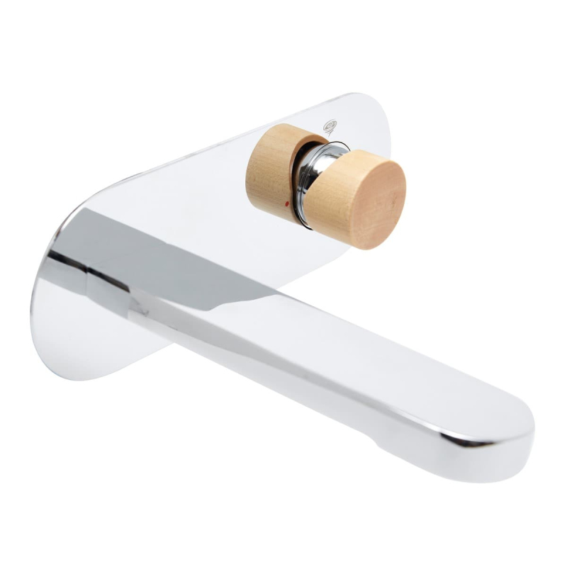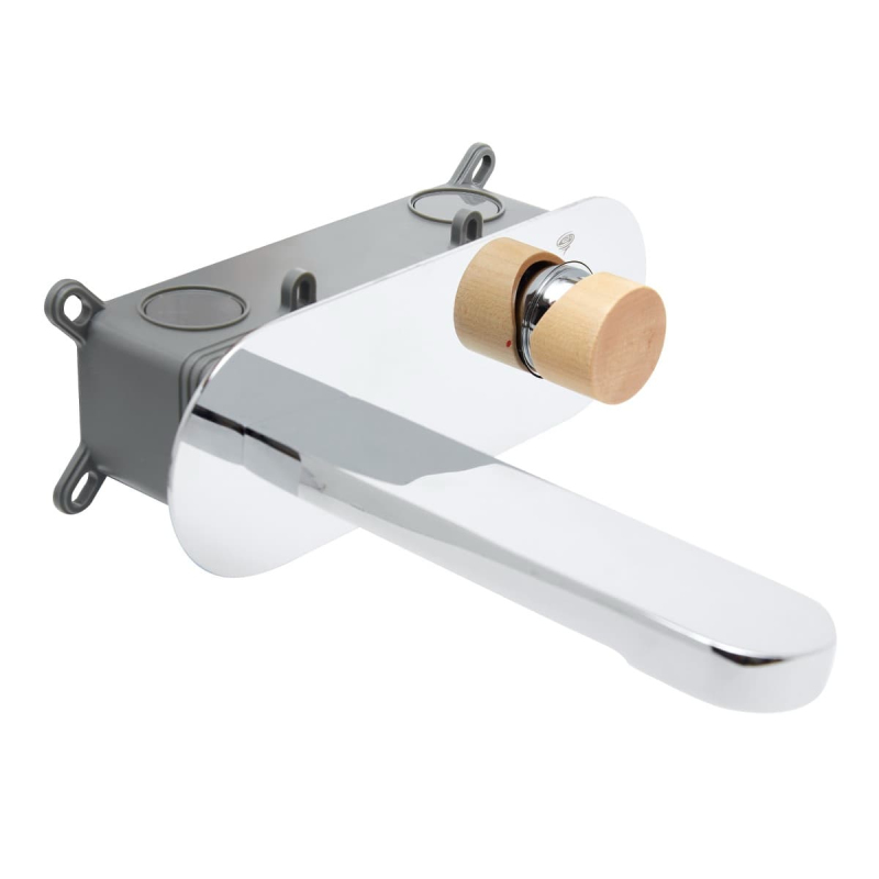 Páková podomítková umyvadlová baterie včetně podomítkového tělesa v imitaci dřeva. V barevném provedení lesk.