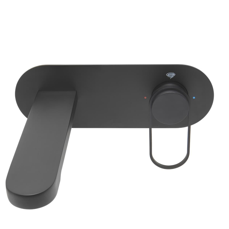 Páková podomítková umyvadlová baterie včetně podomítkového tělesa v černém matném provedení.