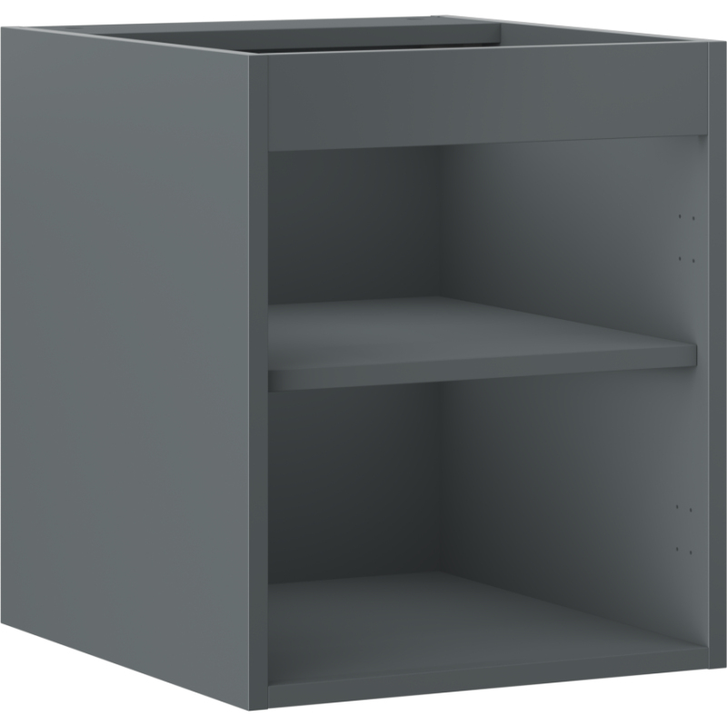 Specifikace produktu: Šířka: 40 cm Hloubka: 44,2 cm Výška: 47 cm Barva: Matný grafit Typ: Závěsný Materiál: Lakovaná deska 1 police Panty s funkcí tlumeného dovírání Univerzální montáž dvířek (levé/pravé) Povrch odolný vůči UV záření Kombinovatelné s dvířky ze série Orio, Rivel Produkt smontovaný