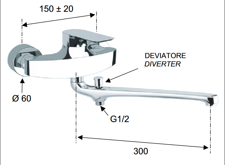 - Umyvadlová/vanová baterie nástěnná s přepínačem